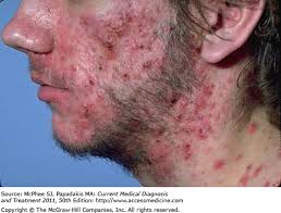 inflamed. Most outbreaks of acne can be treated by keeping the skin clear and avoiding irritating soaps, foods, drinks, and cosmetics.